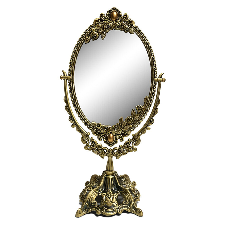 鏡 アンティーク、、 銅材質の金属の材質のンアン,,25x47 大きいサイズ、、ティーク・ウェーブモチーフの両面卓上ミラー、、rosestar,モチーフ